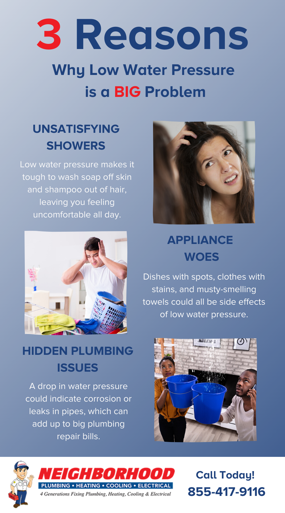 Your friends at Neighborhood are here to tell you, that’s not the case! You don’t have to live with subpar water pressure, and in fact, ignoring a sudden change in your water flow could create even more trouble for you over time. Check out this infographic to see why: